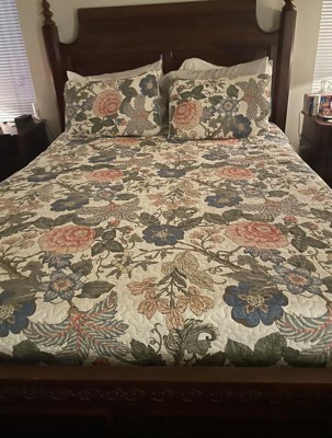 [This review was collected as part of a promotion.] I love this reversible quilt and shams. The floral side is beautiful but the blue and white adds a bit of simplicity to the bed. The quality is great too! Highly recommend. These thoughts are my own, honest and true.