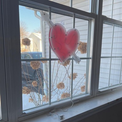 Northlight 18" Red and White Lighted Heart with Arrow Valentine's Day Window Silhouette