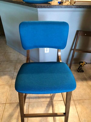Set of 2 Fessenden Barstools Dark Blue - Christopher Knight Home: Mid Century Modern, Rubberwood Frame, Polyester Upholstery