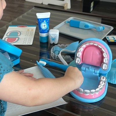 My toddler loves this play set! She's currently fascinated with tooth brushing and loved this dentist play set she received for Christmas. It held her attention for at least an hour, which is a long time for a toddler! She loves all the different things you can do with it: the brushing, the pretend cavity stickers, applying the braces, and using the cleaning instruments. As a mom, I really appreciate that she's learning about good oral hygiene while having fun. We love this play set and recommend it!