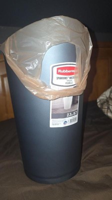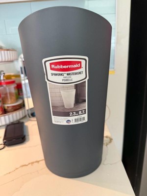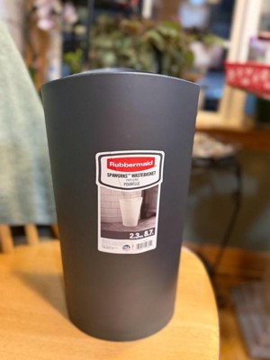 [This review was collected as part of a promotion.] This Rubbermaid spaworks vanity wastebasket is perfect for the office are somewhere you need a little trash can. This wastebasket is 2.3 gallons. Very easy to maintain and keep clean.