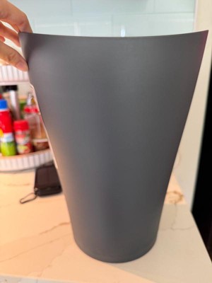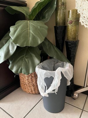 [This review was collected as part of a promotion.] This is a sturdy trash can, and is the perfect size for the bathroom. It is a plain gray color, which matches everything. Grocery bags fit into the trash can perfectly.