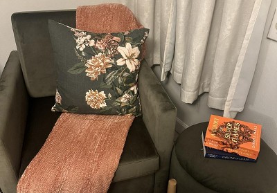 I got this velvet barrel chair from Threshold (https://www.target.com/p/barrel-open-back-accent-chair-velvet-camel---threshold--8482---upholstered-luxury-seating--hardwood-frame--250lb-capacity/-/A-87860886) and wanted a matching ottoman. I really hoped the colors would match closely enough and I was not disappointed. Not a perfect match but as close as you can get!