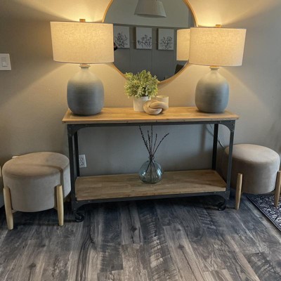 Add luxe style to your seating collection with the Elroy Round Velvet Ottoman with Wooden Legs from Threshold™ designed with Studio McGee. This round ottoman is upholstered in velvet fabric for an eye-catching look. Set on a wooden frame with four legs, it provides a comfy surface for sitting or resting your feet, and it can be spot cleaned or wiped clean for a quick refresh as needed.