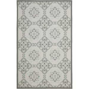 Elevate your living space with the elegance and versatility of our indoor/outdoor area rug, sized at a comfortable 5'-3" X 7'-7". With a sophisticated light grey and anthracite color palette, this medium rectangle rug boasts a timeless design that fuses classic charm with contemporary style.