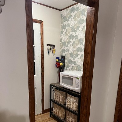 This wonderful wallcovering turned a nondescript bedroom closet into an unexpected laundry space. I love it!