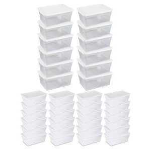 Clear through all the clutter and bring some organization and sanity back to your closet with this multi-pack of (12) 16-Quart and (24) 6-Quart Plastic Storage Totes from Sterilite.
