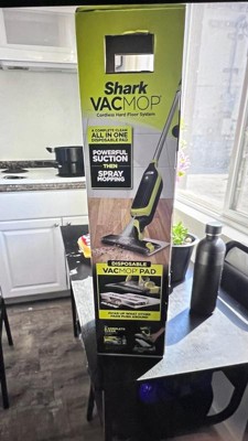 The Shark VACMOP Pro Cordless Hard Floor Vacuum Mop with Disposable VACMOP Pad combines vacuuming and mopping into one easy step. It picks up dry dirt, dust, and crumbs while simultaneously spraying mop solution and trapping messes in the disposable pad. The cordless design and lightweight build make it effortless to maneuver around kitchen and hard-floor spaces, and cleanup is quick with no bucket or wringing needed. A convenient all-in-one floor cleaning solution for everyday messes.