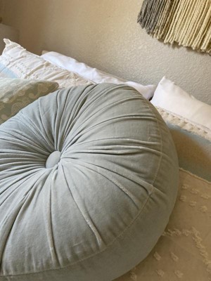 Indulge in the velvety soft texture of this round throw pillow by Mina Victory Home. Its ruched cotton cover gives your living room or bedroom a beautiful and refined look, crafted in tones that fit seamlessly in boho-modern styles of decor. Toss this luxurious pillow on your sofa or bed for an instant uplift in elegance. 16” diameter with zipper closure.