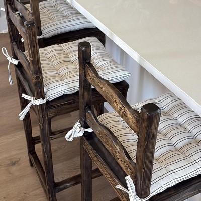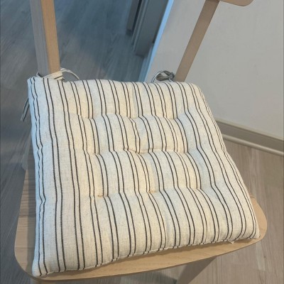 These are so cute and the fabric feels like a very nice linen. The size was perfect for my chairs and they have just the right amount of cushion. The only thing is that after a couple months, one of the ties ripped off, but that’s nothing I couldn’t easily fix with a needle and thread. I think you’d be hard-pressed to find a better seat cushion at this price point.