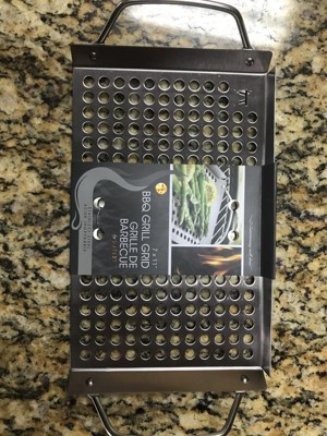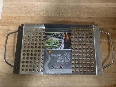 [This review was collected as part of a promotion.] Love this SS Grill Grid by Outset! This is a large grill 11 by 17 which fits perfectly on my outside grill. The grill has a lip so no chasing your veggies. Comes with handles so easy to use. Just a quick spray of non-stick spray you are ready to grill. I throw mine into the dishwasher so easy cleanup! Great Product!