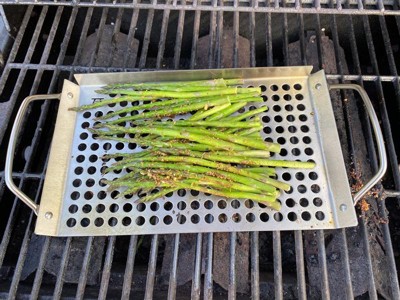 [This review was collected as part of a promotion.] What I didn’t realize when I selected this grill grid on line is that there isn’t a lip on one side of the tray. I couldn’t see that in the picture. But this is a good thing! It makes it easier to rotate the food by getting your spatula in there. This is a heavy weight nice tray with handles. Works great for asparagus on the grill! And clean up a breeze. I like this size also.