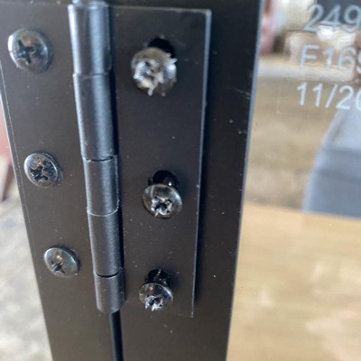 The item itself is beautiful, but assembly is horrific and disappointing. The shelves have to be screwed in, but there are no pilot holes in the shelf so it’s all brute strength. But the worst part is the screw holes in the metal doors. Unlike the door knob holes which were drilled and easy to access, the door hinge holes were all done by punch, making them smaller than the screw itself. We tried forcing it but metal shavings occurred, and even with brute force, you end up stripping out the screws before they can be completely installed. If you’re going to order this, pay for the assembly and have it shipped to your local Target so you can inspect it before taking it home. It is a heavy box so better to do it the hard way if you really want it so you save yourself some agony. We are so irritated we’re just returning it to the store. So disappointing.