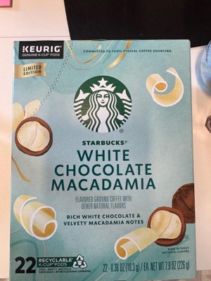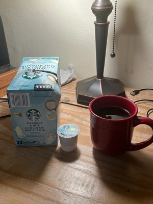 [This review was collected as part of a promotion.] Sooo good. I love the smell and of course the flavor of this Starbucks white chocolate macadamia nut coffee. The k-cups are so convenient in making a single serve cup of coffee anytime I want. I also enjoy brewing a fresh cup instantly opposed to a pot of coffee that sits around and you have to reheat.