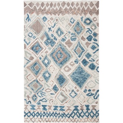 The rug is beautiful. The gray/olive (gray more prominent) has a little blue in it goes nicely with our blue couch and warm oak floors. It says it is made of wool and handmade. Only drawback has been shedding. I took it outside and "beat" it for several minutes to get the excess fibers out and that has helped. Also used a Ryobi handheld vacuum on it and that worked too. Love the design/colors, very unique. I'll probably just keep using the small vacuum on it. Got it on sale so great value.