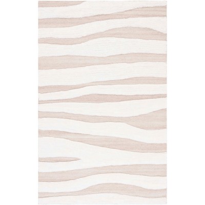 Enhance your living space with this stunning hand-tufted area rug, a piece that artfully combines artisan craftsmanship with the timeless elegance of a classic zebra pattern. Crafted in India, this 5' x 8' medium rectangle rug exudes sophistication in a chic beige and black color palette, sure to complement a variety of decor settings.