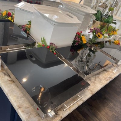 This warming tray has a big surface area and gets quite hot. It looks nice on the counter, too.