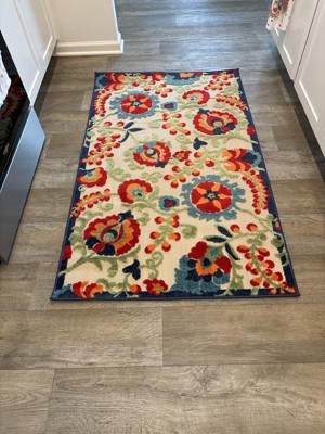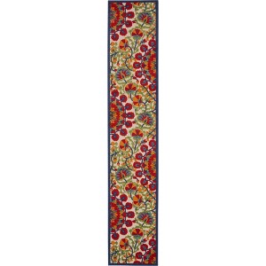 This outdoor rug from the Aloha Collection features soft cut pile and textural woven patterns in bursts of color sure to enliven any space, both inside and outside your home. Twisting vines and blooms in red and orange multicolor add a festive floral touch to your patio or deck. Created from premium fibers for low maintenance and a splendid texture. When cleaning outdoors rinse with a hose. To extend the life of this area rug bring indoors during extreme weather.