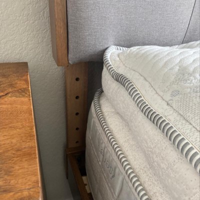 I’m so disappointed at how this arrived. Almost every single peice is damaged. The wood is peeling upon removing from the box! The main footboard has a large crack. The fact that I ordered a king frame with a king mattress yet it completely shows all of the adjustable holes looks terrible