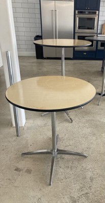 [This review was collected as part of a promotion.] This 30" round cocktail table is great for a wide range of uses. It came well packaged and works great for our hosting needs. Primarily we use it with the 42" post for a standing table. It is made up of three simple parts. The top, base and two post heights. Everything fits together well and feels stable and level. Only minor issue is the black rubber edge on ours bubbled out slightly in one small area. Doesn't affect us at all. Overall, well done!