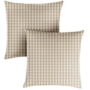 20"x20" 2pk Square Indoor Outdoor Knife Edge Throw Pillows Beige/White: Weather-Resistant, Buffalo Check Design