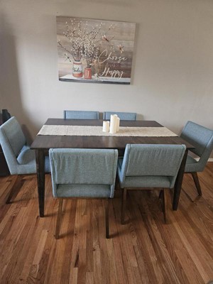 Careful. Not exactly the color in the photos. My decor was fine with the color leaning more green than blue. Chairs are sturdy.