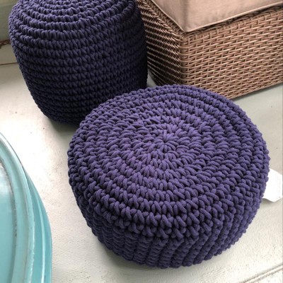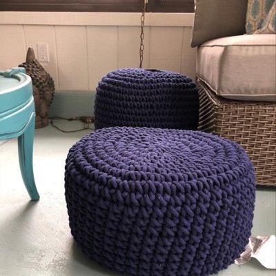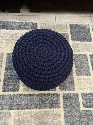 This poof is a great navy blue color! True to advertised picture. Texture is rope-like so it is firm to sit on but still comfortable to put your feet up as if it were a footstool. Great size and height for couches!