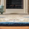 Crafted with meticulous care in India, our rug showcases a harmonious combination of navy and beige hues that will complement a variety of decor settings. The traditional patterning, inspired by classic designs, features ornate scrolls and floral motifs, providing an opulent and timeless appeal.