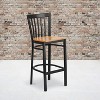 Product Name: Flash Furniture HERCULES Series Black School House Back Metal Restaurant Barstool - Natural Wood Seat