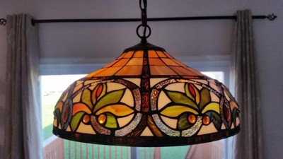 18" x 18" x 12" Tiffany Style Hanging Lamp Amber/Green - Warehouse of Tiffany