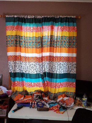 [This review was collected as part of a promotion.] These curtains are everything and more. They are beautiful. The colors are bright and bold and the mixing of the colors is perfect. These curtains are definitely “outside” the box I normally put myself on. When I hung them in my spare room it really brightened up the room so much that I could envision what the room could become. It has inspired me to use color in the other rooms of my house. I would highly suggest buying these curtains. Every time I pass this room and catch the colors I smile.
