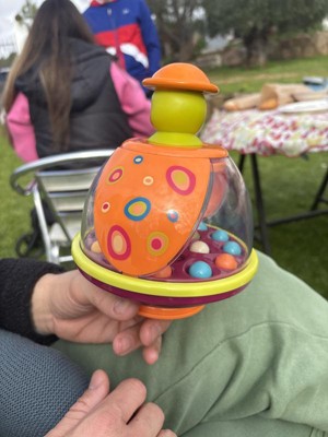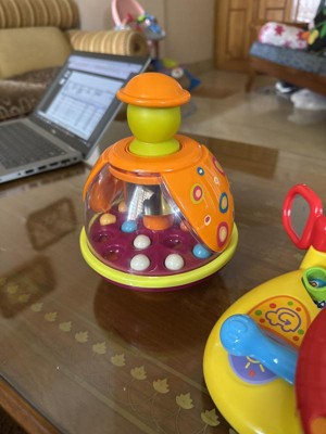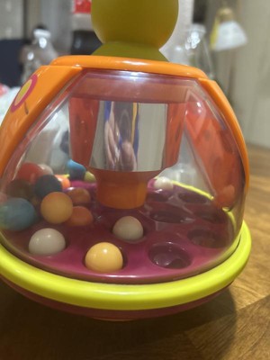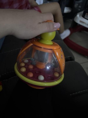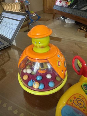 Misleading - it doesn't spin! The toy packaging does say "Spinning Top", but it's not possible in the design. The balls only jump around within the chamber. Just a heads up so you know what you are not buying.