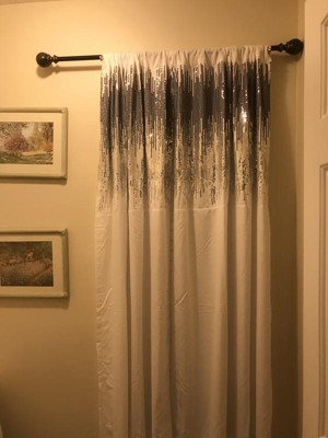[This review was collected as part of a promotion.] There is two panels for this gorgeous shimmer sequin curtains. I use them in my bathroom, definitely adds the touch I have been wanting. These curtains will make any room sparkle and shine, definitely says me all over them!! Exactly what any room needs to it, a little sparkle. They are very pretty, would go with about anything. Definitely will recommend them to anyone looking for new curtains!!