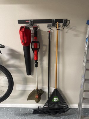 Not often do you find something that works as indicated in the promo materials. These do. I have 2 of them (soon to be 4) and they are currently holding commercial grade metal rakes & shovels. When properly installed in the system, the hooks easily hold the weight without slipping through like the 3-handle hook does.