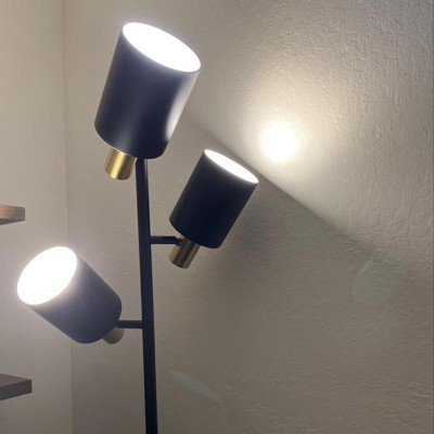 67" Fiona 3-Light Matte Black Track Tree Lamp with Matte Brass Accents - Novogratz x Globe: Metal Shade, ETL Listed, Push Button Switch
