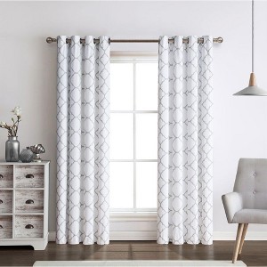 Kate Aurora 2 Piece Thermal Lattice Foamback Room Darkening Grommet Top Curtains - 52 in. W x 84 in. L, Gray