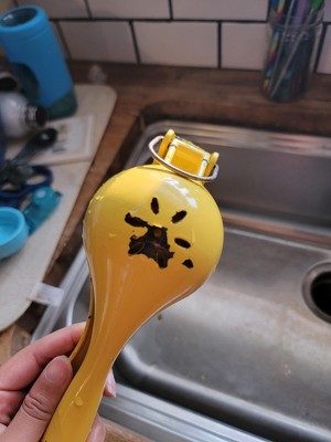 Have had this for four years and the coating has chipped. It claims to be dishwasher safe but I think that is what damaged it. Buy a stainless steel one- it will last longer!