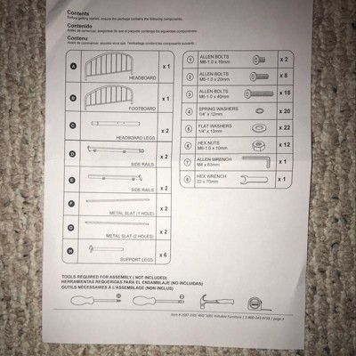 - Includes headboard, footboard and bed frame; mattress and box spring required, not included
