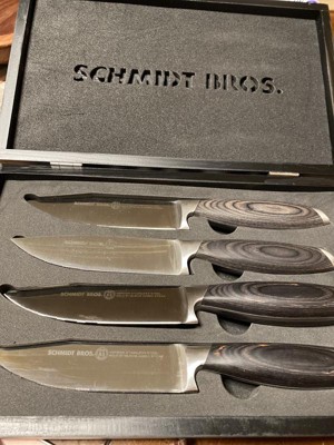 Schmidt Brothers Cutlery Bonded Ash 4pc Jumbo Steak Knife Set: Stainless Steel Forged Blades, Wood Handles, Hand Wash