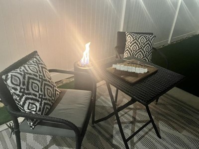 Perfect for small space patio. Please note, propane is provided via a 1 pound disposable cylinder, like for a camping stove.