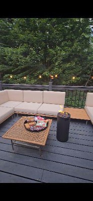 Great addition to our deck. Gives off heat as well and beautiful in the evening. Great ambience.