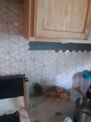 RoomMates Carrara Marble Hexagon Peel And Stick Backsplash: Self-Adhesive PVC Tile Paper, Blue, 4 Pieces, 2.6 Sq Ft Coverage