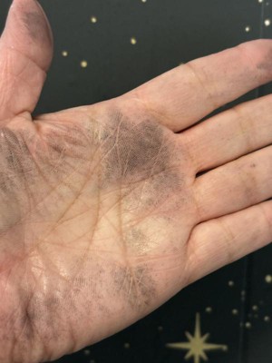 Color rubs off on your hands during application. If used in a high traffic area it might run off in clothing too.