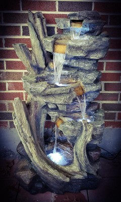 [This review was collected as part of a promotion.] I have been enjoying using this waterfall in my backyard on my deck. It has created a serene and relaxing environment. I really like the stone design and rustic look to it. It looks like it belongs in nature, on a miniature scale! The waterfall is not small so beside that you measure your space before purchasing. It also has a good weight to it so that it doesn't get blown around in the wind. This waterfall also has a LED light feature which I also have been enjoying. It looks so pretty at night! The instructions were easy to follow for set up. The company recommends that you use distilled water for this product. Definitely have been very happy with this product and have been enjoying it throughly.