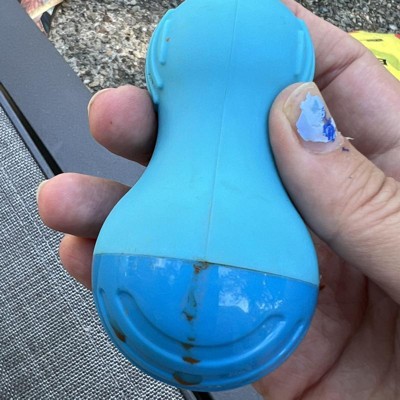 I washed the toy after it had been on the floor for a while; afterwards, while my little one was drooling all over it, it started leaking rust! I didn’t realize baby toys were ever made of metal (even on the inside).