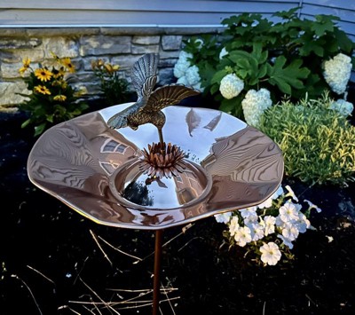 7" Hummingbird Birdbath Bowl with Stake Copper Plated - ACHLA Designs: Weather-Resistant, No Assembly Required