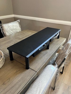 [This review was collected as part of a promotion.] This monitor stand was perfect, not only did it help raise my computer to a better height but it keeps my desk organized. It also freed up a lot of room on my desk with the drawers to put stuff in.