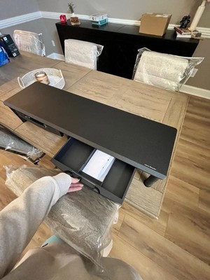 [This review was collected as part of a promotion.] I used this for my 32 in TV that I use for gaming and it fits perfectly and even fits my ps5 on it to it gives Mr the room I need and props my TV up higher which helps me when I play the ps5 as well and I put my pens and stuff in the drawers giving me even more room on my desks the best part is I was actually thinking of getting something like this and this was perfect might need to get one for my bf next.