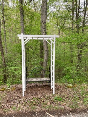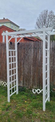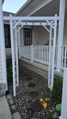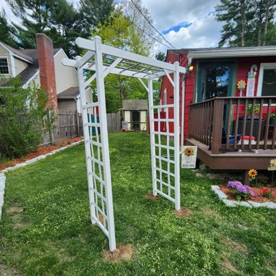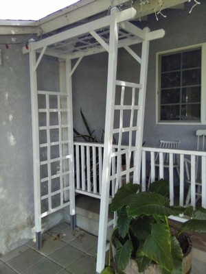 [This review was collected as part of a promotion.] I absolutely love this arbor. It was the perfect tie-in for my garden area. It was easy to assemble and took only an hour. Just make sure you tape the end pieces on while you are waiting for the glue to dry. I am so happy with this and how it's been holding up!