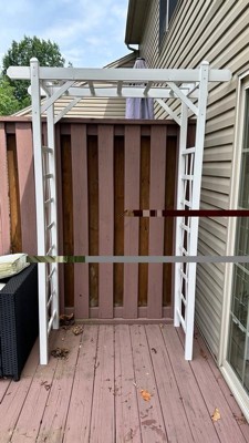 [This review was collected as part of a promotion.] So happy with receiving this! It went up in under an hour and will be loved all summer long. The white makes my house and plants pop! I hope to be able to update my photo in August after I have tons more growth. Also it will be so easy to clean, wood stains! So thankful for this